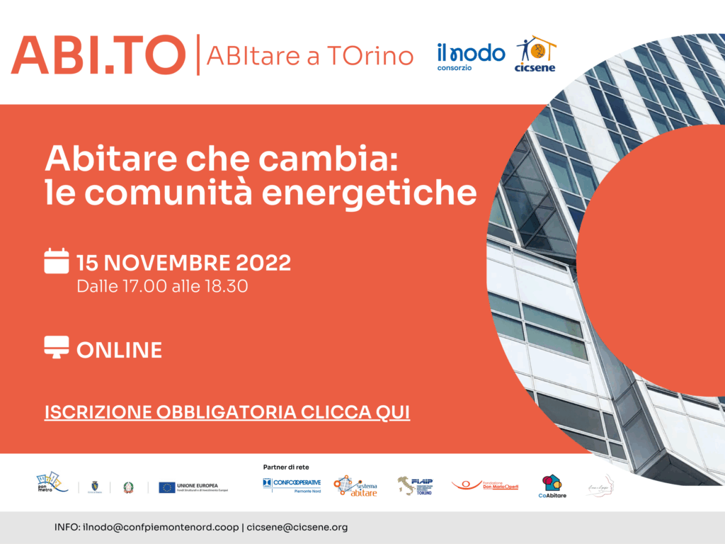 Il prossimo appuntamento del progetto ABI.TO (ABItare a TOrino) tratterà tematiche legate ai cambiamenti della società ed in particolare alle comunità energetiche. Questo incontro è parte della rassegna su casa e vulnerabilità abitativa, realizzato all’interno del ciclo dei 12 workshop del progetto ABI.TO. Il progetto ABI.TO è inserito all’interno del Programma Operativo Nazionale Città Metropolitane 2014-2020 (PON Metro), […]