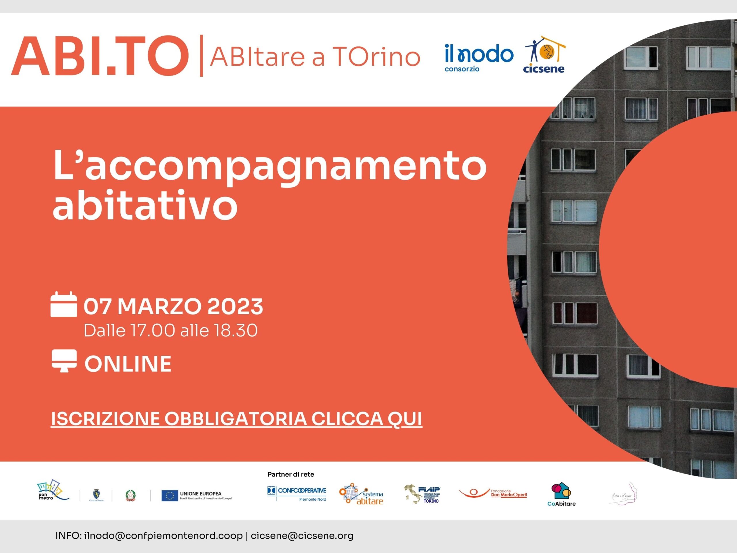 Il progetto ABI.TO è inserito all’interno del Programma Operativo Nazionale Città Metropolitane 2014-2020 (PON Metro), adottato dalla Commissione Europea, con l’obiettivo di creare maggiore inclusione sociale. Inoltre, è promosso e sostenuto da Comune di Torino e nasce dall’impegno del capofila Il NODO cscs, dal partner CICSENE e da una fitta rete di collaborazione territoriale composta da Confcooperative Piemonte Nord, FIAIP (Federazione Italiana Agenti Immobiliari Professionali), Associazione Il rosa e il grigio, Fondazione Operti, Sistema Abitare, COabitare.
