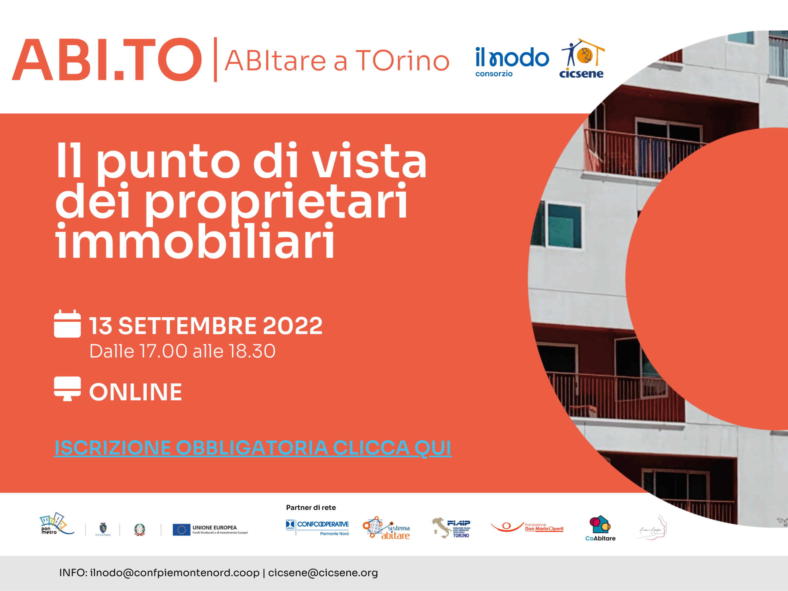 Il progetto ABI.TO è inserito all’interno del Programma Operativo Nazionale Città Metropolitane 2014-2020 (PON Metro), adottato dalla Commissione Europea, con l’obiettivo di creare maggiore inclusione sociale. Inoltre, è promosso e sostenuto dal Comune di Torino e nasce dall’impegno del capofila IL NODO cscs, dal partner CICSENE e da una fitta rete di collaborazione territoriale composta da Confcooperative Piemonte Nord, FIAIP (Federazione Italiana Agenti Immobiliari Professionali), Ass. Il rosa e il grigio, Fondazione Operti, Sistema Abitare, COabitare.