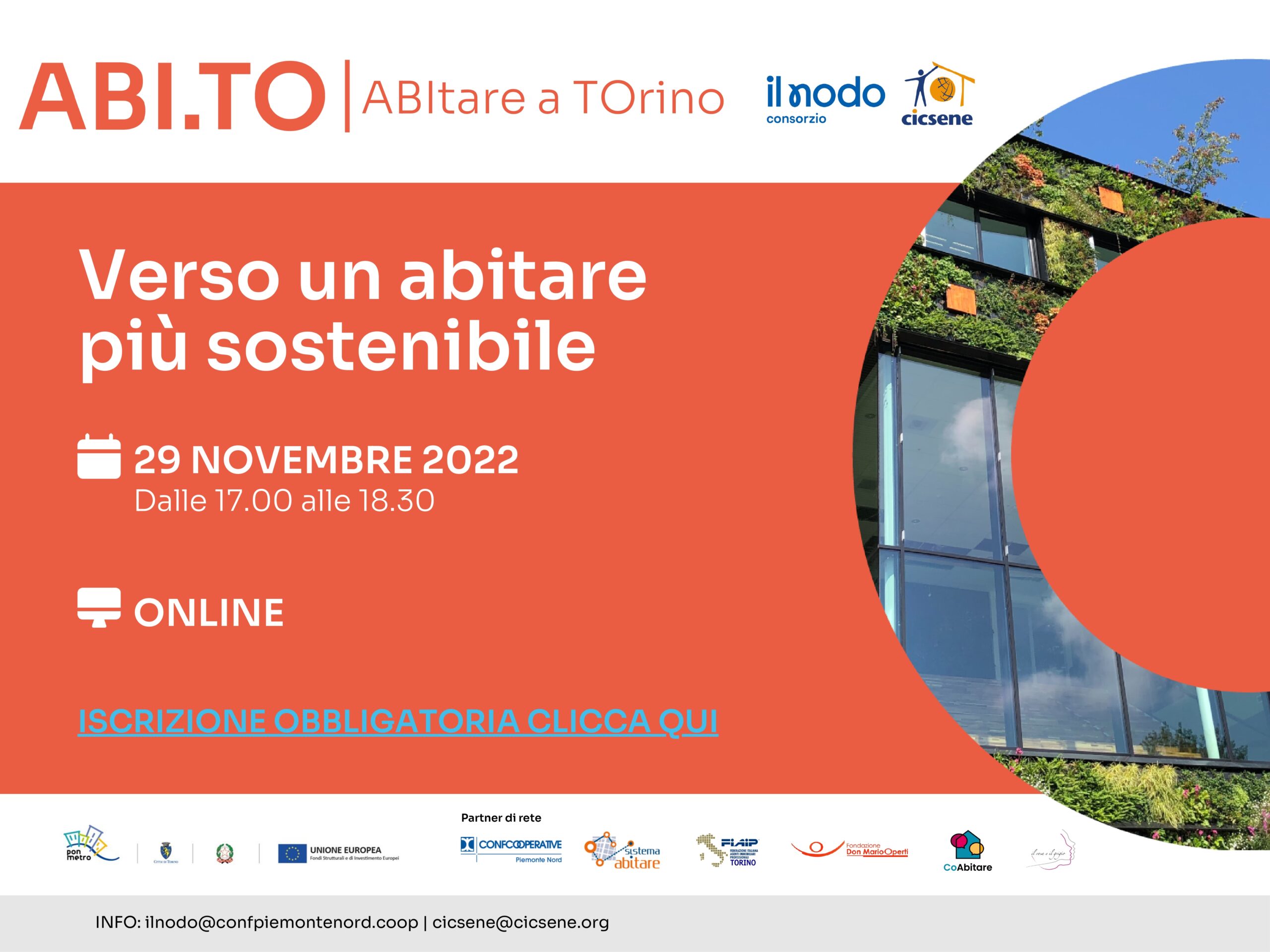 Il progetto ABI.TO è inserito all’interno del Programma Operativo Nazionale Città Metropolitane 2014-2020 (PON Metro), adottato dalla Commissione Europea, con l’obiettivo di creare maggiore inclusione sociale. Inoltre, è promosso e sostenuto dal Comune di Torino e nasce dall’impegno del capofila IL NODO cscs, dal partner CICSENE e da una fitta rete di collaborazione territoriale composta da Confcooperative Piemonte Nord, FIAIP (Federazione Italiana Agenti Immobiliari Professionali), Ass. Il rosa e il grigio, Fondazione Operti, Sistema Abitare, COabitare.