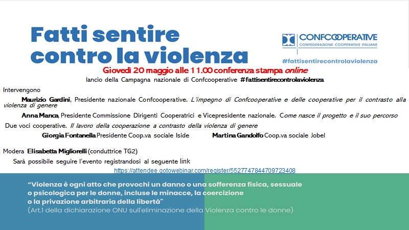 Confcooperative e la Commissione Dirigenti Cooperatrici hanno lavorato insieme per la Campagna nazionale di sensibilizzazione e informazione #fattisentirecontrolaviolenza.